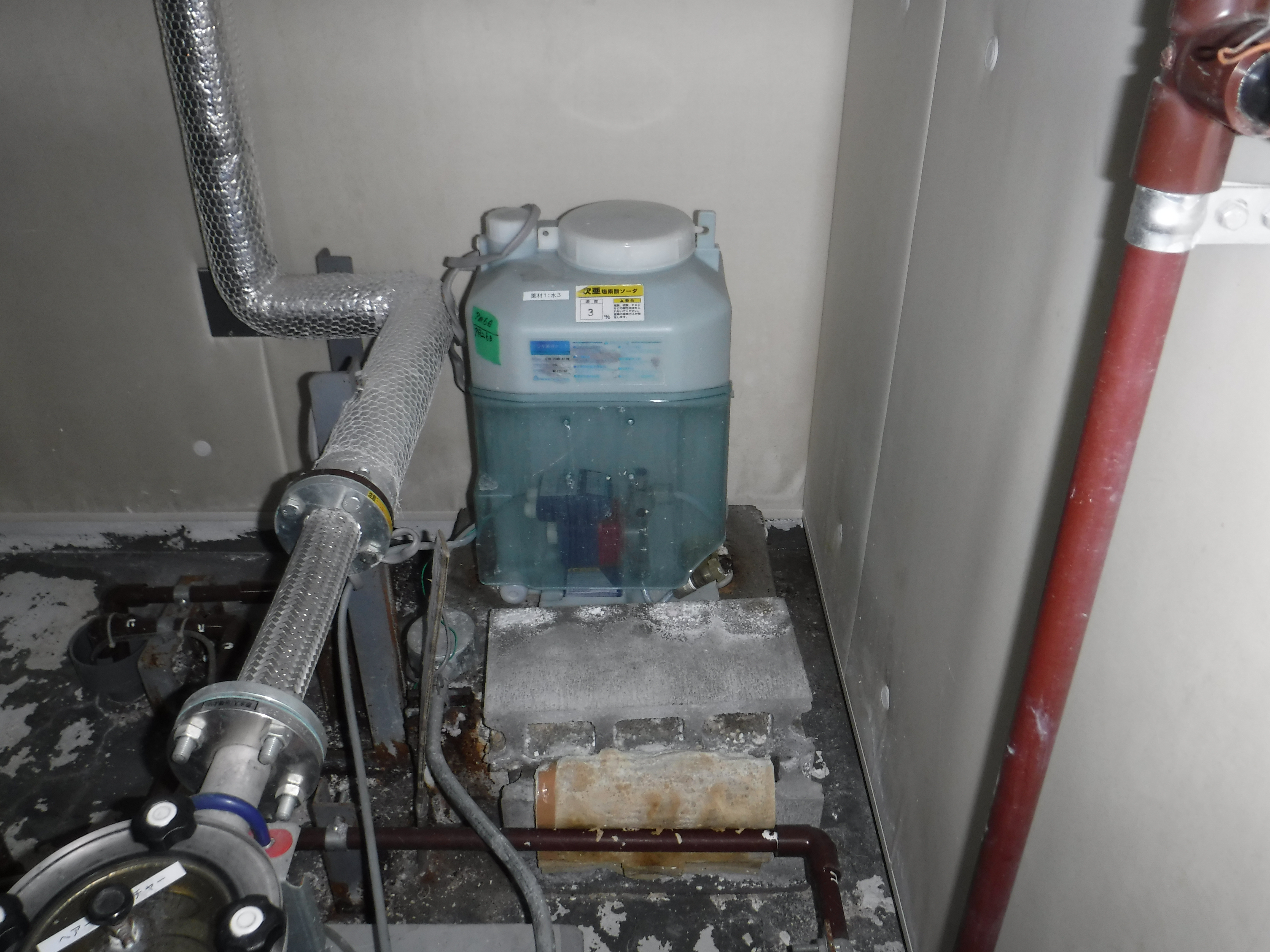 京都市内某社員寮 濾過機薬注タンク交換作業